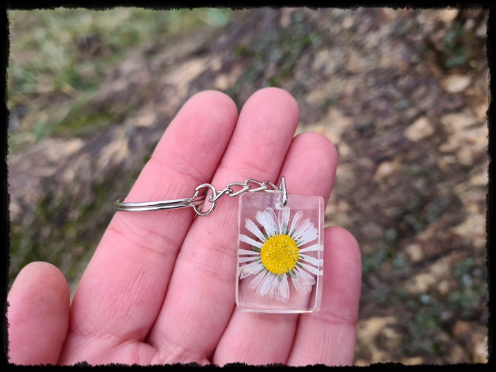 Brelok ręcznie wykonany z żywicy, z zatopioną