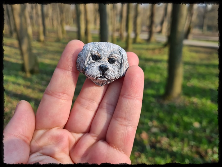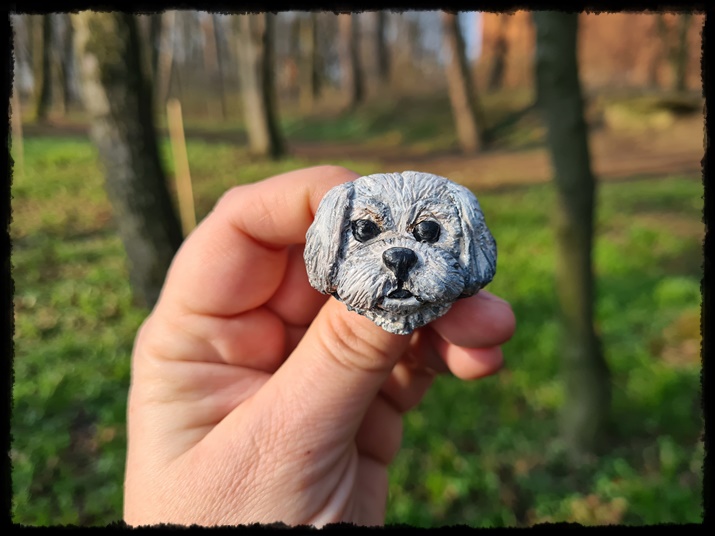 kształcie psa-maltańczyka. Ręcznie malowana i