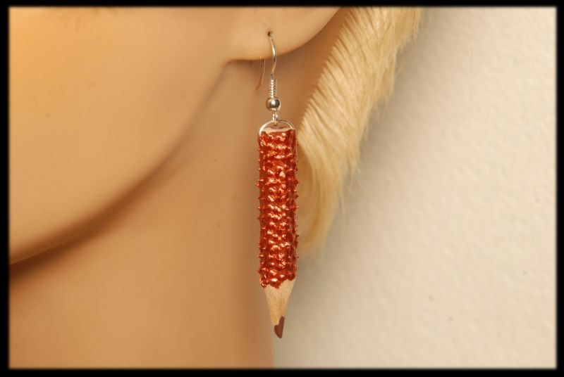 Kolczyki wykonane z kredek pomalowanych w