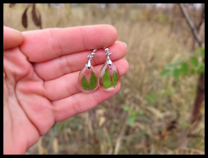 Kolczyki łezki z paprocią