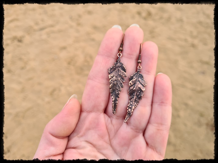 Kolczyki miedziane liście paproci