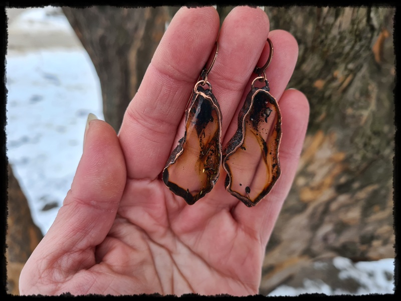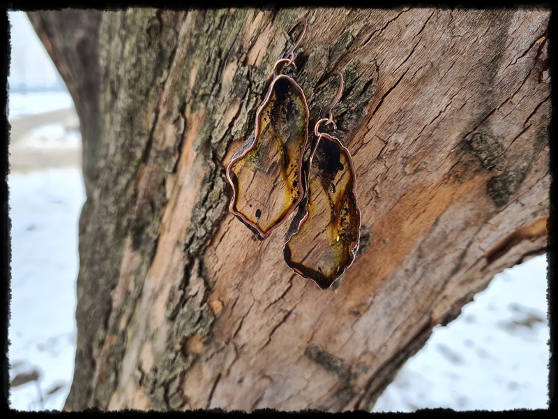 Kolczyki miedziane z bursztynem