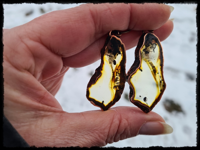 Kolczyki ręcznie wykonane z kawałków bursztynu oprawionego