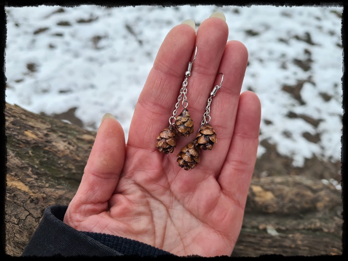Kolczyki ręcznie wykonane z naturalnych szyszek,