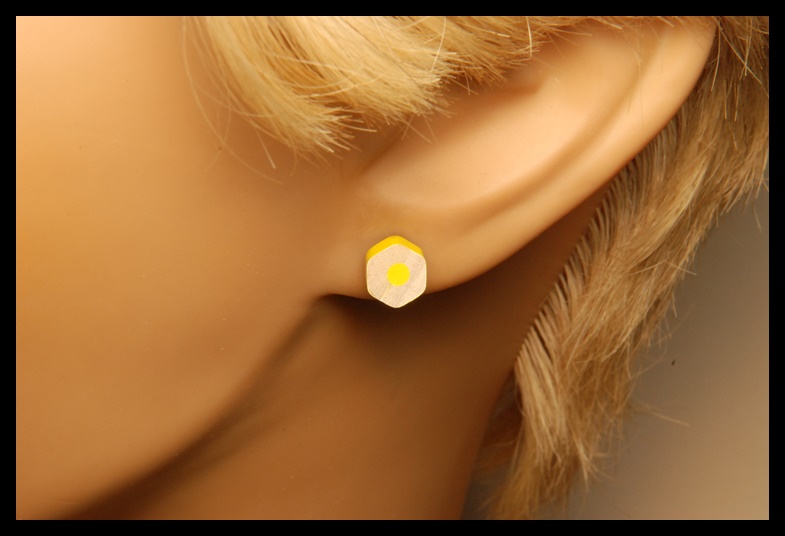 Kolczyki wykonane z plasterków żółtej kredki.