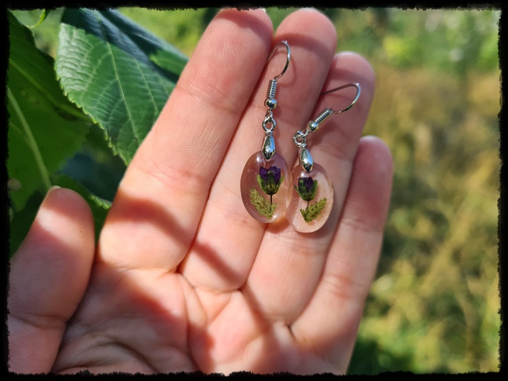 Kolczyki ręcznie wykonane z żywicy z zatopionymi