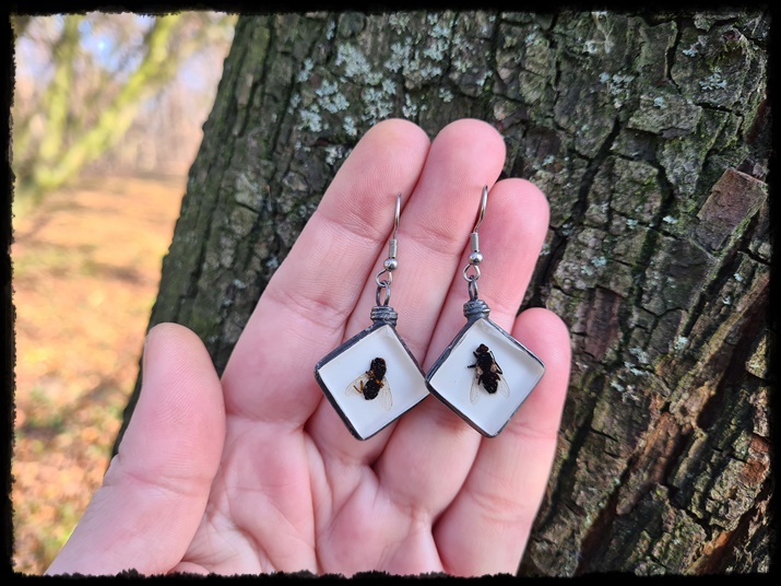 Kolczyki ręcznie wykonane z żywicy z zatopionymi