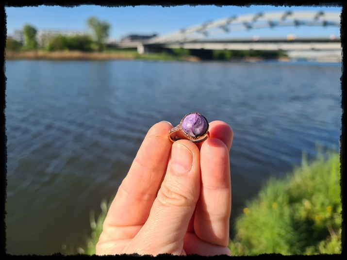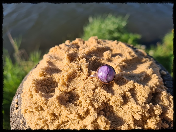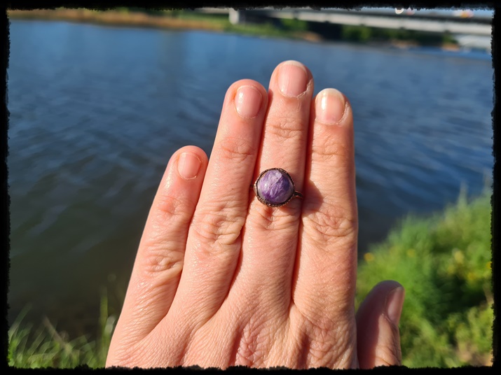 Pierścionek miedziany z czaroitem