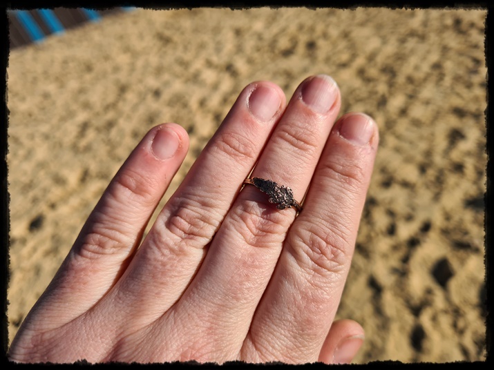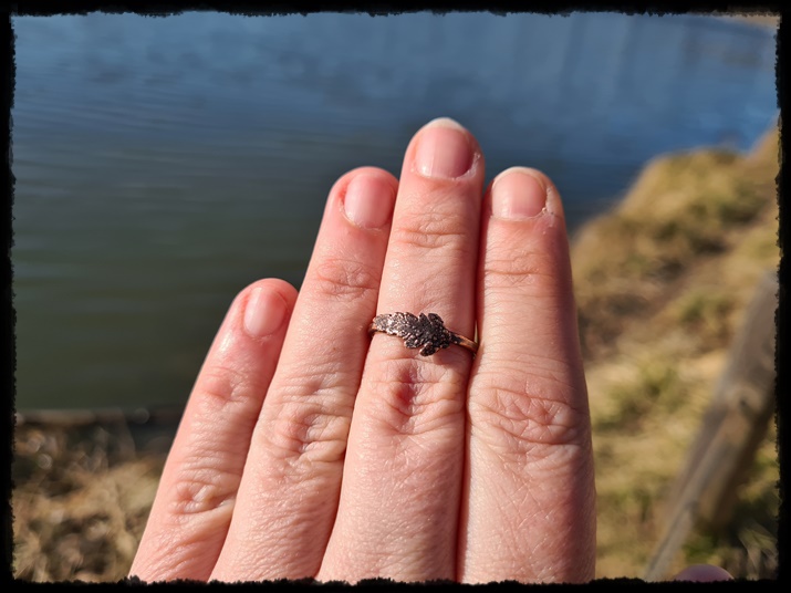 Pierścionek ręcznie wykonany z małego liścia paproci