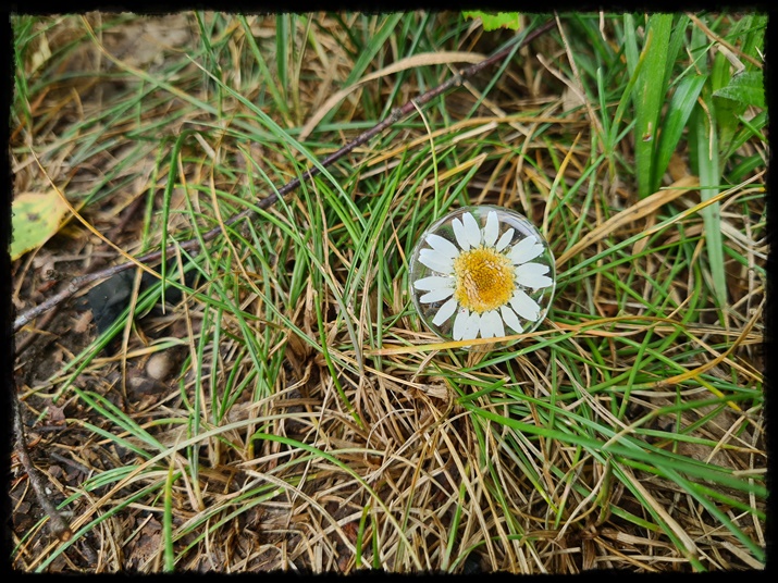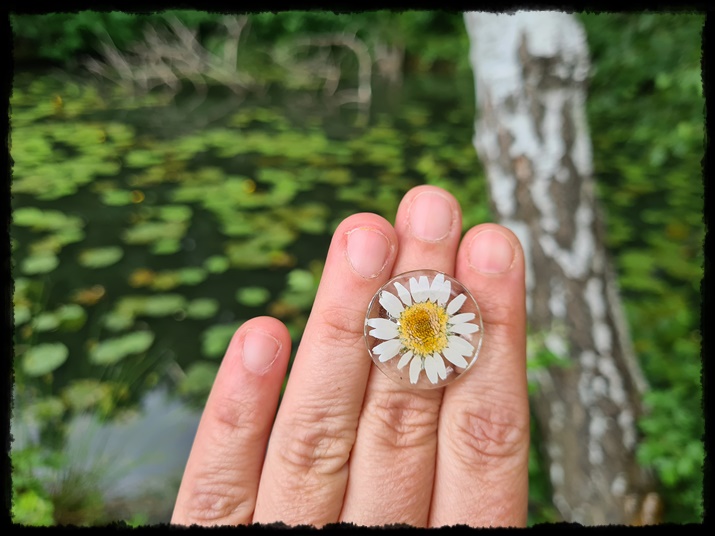 Pierścionek ręcznie wykonany z żywicy z zatopioną