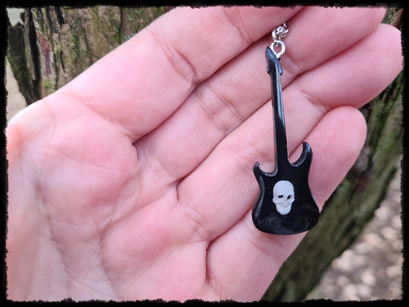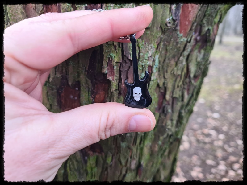 Wisior ręcznie wykonany z żywicy w kształcie gitary.