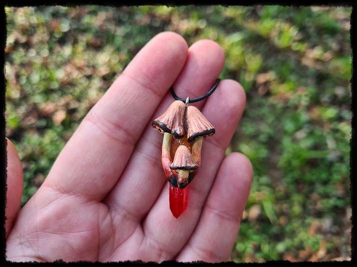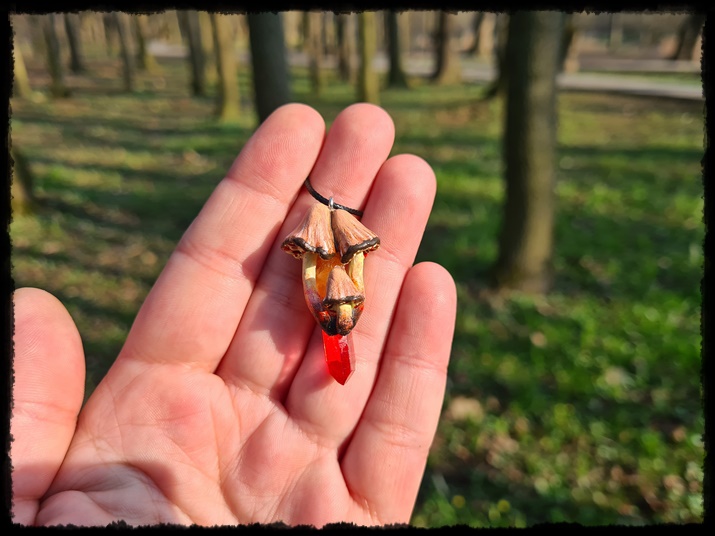 Wisior grzyb z kwarcem