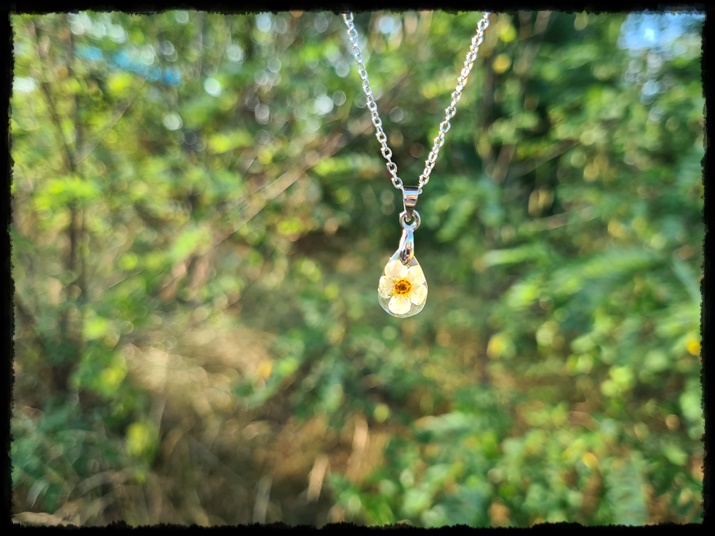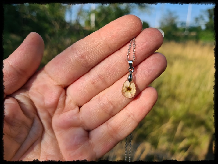 Wisior ręcznie wykonany z żywicy z zatopionym kwiatem