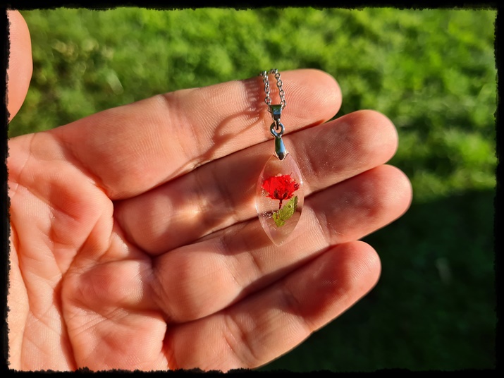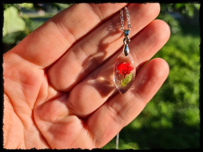 Wisior ręcznie wykonany z żywicy z zatopionym kwiatem