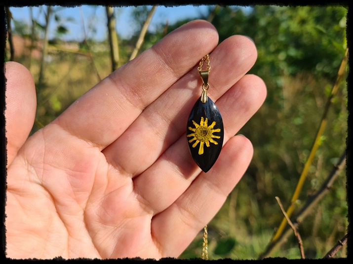 Wisior ręcznie wykonany z żywicy z zatopionym kwiatem