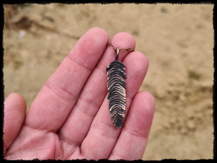 Wisior ręcznie wykonany z prawdziwego liścia calliandry