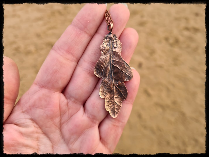 Wisior ręcznie wykonany z prawdziwego liścia dębu