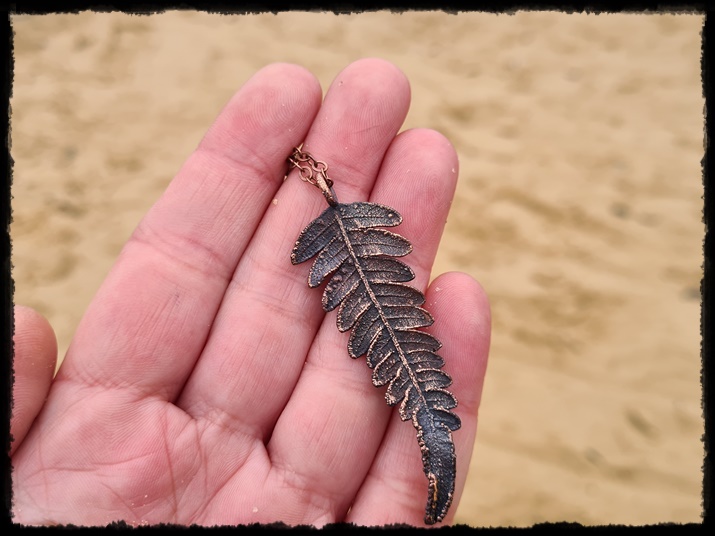 Wisior ręcznie wykonany z prawdziwego liścia paproci