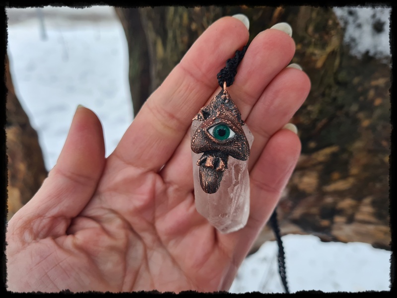 z dodatkiem ręcznie robionego grzyba z okiem.