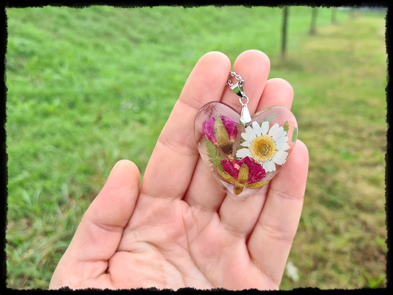 wiosenny ogród. Wisior w kształcie serca, wykończony