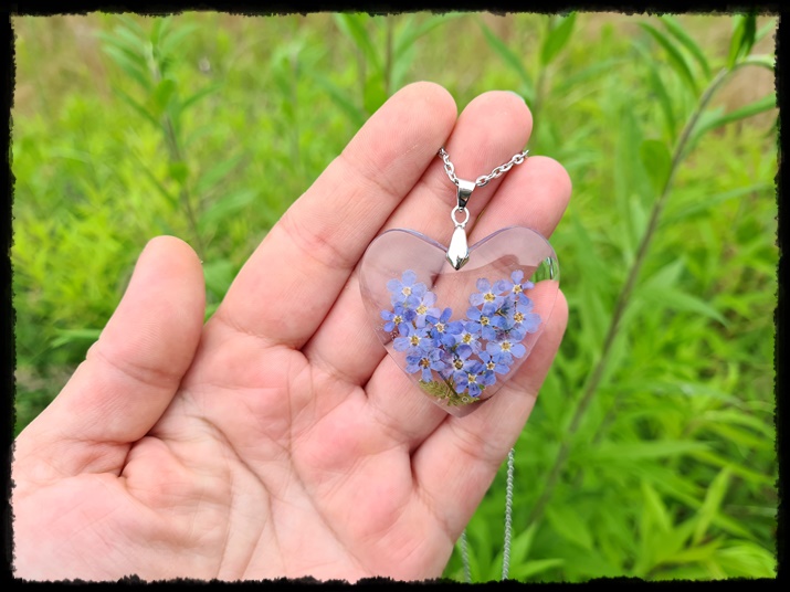 Wisior serce z niezapominajkami