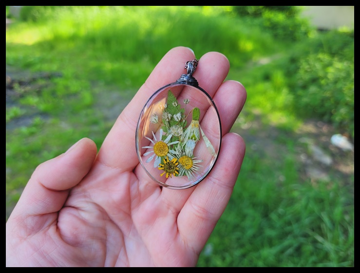 Wisior ręcznie wykonany z żywicy, z zatopionymi