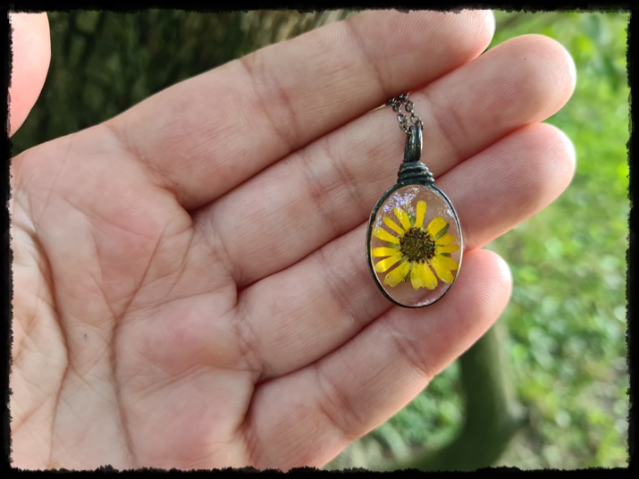 Wisior ręcznie wykonany z żywicy, z zatopionym kwiatem