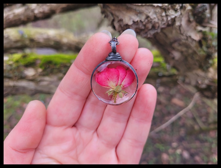 pąkiem róży. Wisior wykończony miedzią ,