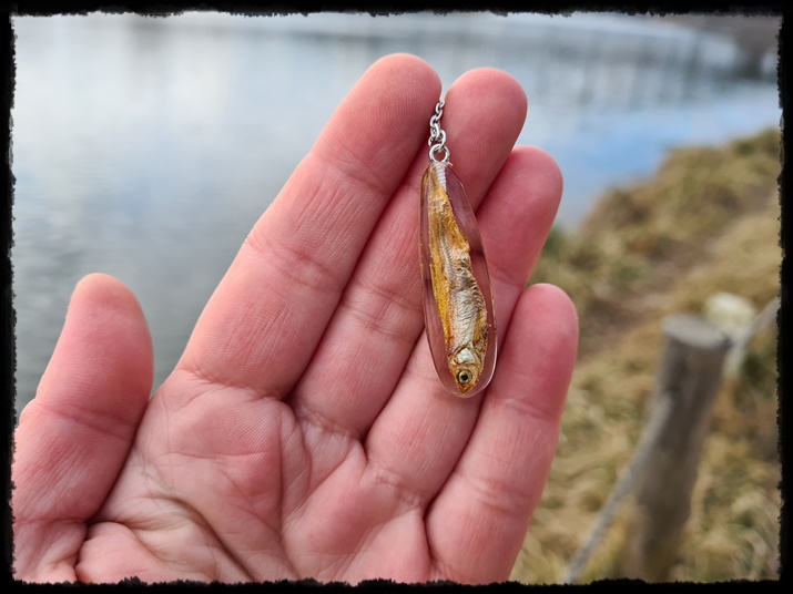 Wisior ręcznie wykonany z żywicy z zatopioną rybką