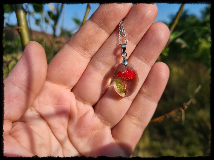 Wisior ręcznie wykonany z żywicy z zatopionym kwiatem